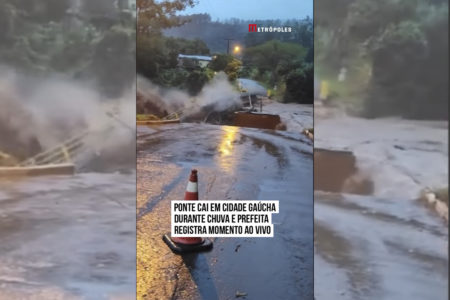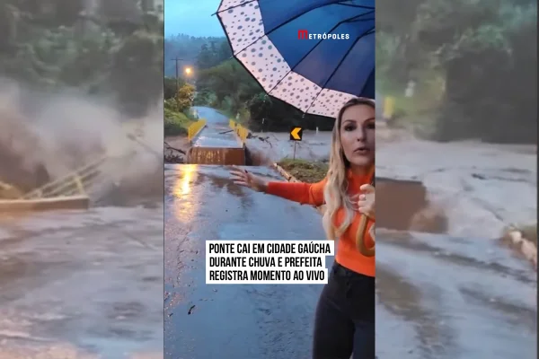 ⏯️ Ponte cai em cidade gaúcha durante fortes chuvas e prefeita registra momento ao vivo.