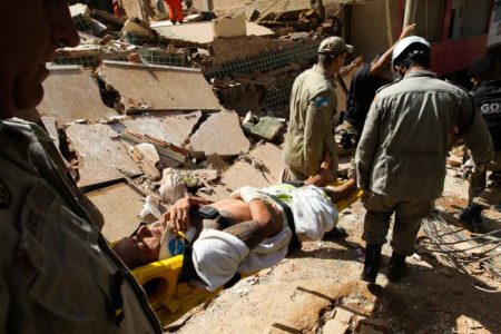 Estão sendo empregadas britadeiras, cortadeiras e cães farejadores, que indicam os locais onde possa haver pessoas. A equipe completa do Corpo de Bombeiros conta com 11 militares no local, com substituições a cada 12 horas.