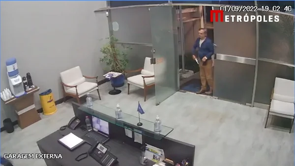Câmeras de segurança flagraram o momento em que o deputado faz o disparo. O tiro atinge uma foto de Vinholi.