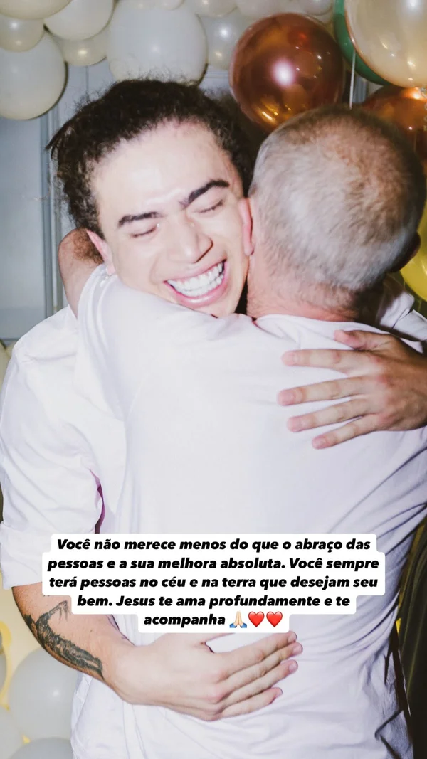 “Você não merece menos do que o abraço das pessoas e a sua melhora absoluta. Você sempre terá pessoas no céu e na terra que deseja o seu Bem. Jesus te ama profundamente e te acompanha“, escreveu.