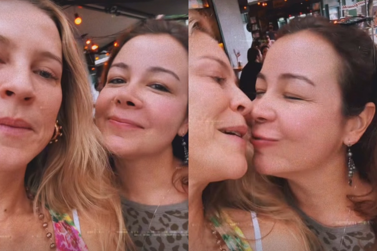 Em seguida, a atriz filmou amigos com quem estava confraternizando. Ao filmar uma das amigas, ela chamou a mulher de “namorada”. “Minha mulher gente, a protagonista do meu stand-up. Você está sendo apresentada, todo mundo quer saber quem é a namorada”, brincou Luana Piovani. Em seguida, as amigas quase se beijam na boca ao se cumprimentarem. “Ai que loucura”.