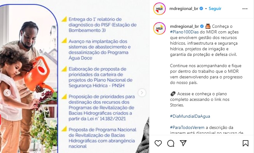“Proposição de prioridades para destinação dos recursos dos Programas de Revitalização de Bacias Hidrográficas criados a partir da Lei nº 14.182/2021”, escreveu o Ministério do Desenvolvimento Regional.