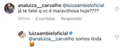 A ex-musa da banheira do Gugu se explicou dizendo que não desmereceu a ex-panicat. Na verdade, Luiza garante que aconteceu o contrário: “Ela não falou comigo o evento todo e, bem na hora que eu já estava indo embora, porque tinha que acordar muito cedo resolveu falar comigo. Eu já tinha me despedido das pessoas e quem estava comigo também precisava ir embora”.