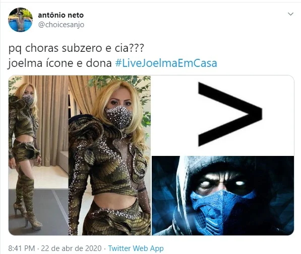 Joelma usou uma máscara personalizada e um look bem “diferentão”, e os internautas compararam a roupa com os personagens do jogo Mortal Kombat e do filme Batman.