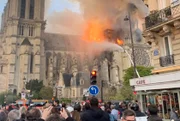 Segundo testemunhas, há chamas saindo das duas torres dos sinos e as paredes do edifício estão desmoronando devido à extensão das labaredas.